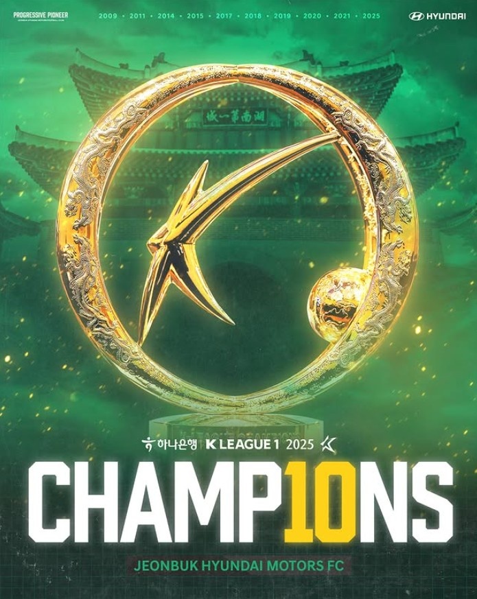 2025-10-18 16:01:24全北現代提前5輪奪得K1聯賽冠軍,成首支10奪K1聯賽冠軍球隊